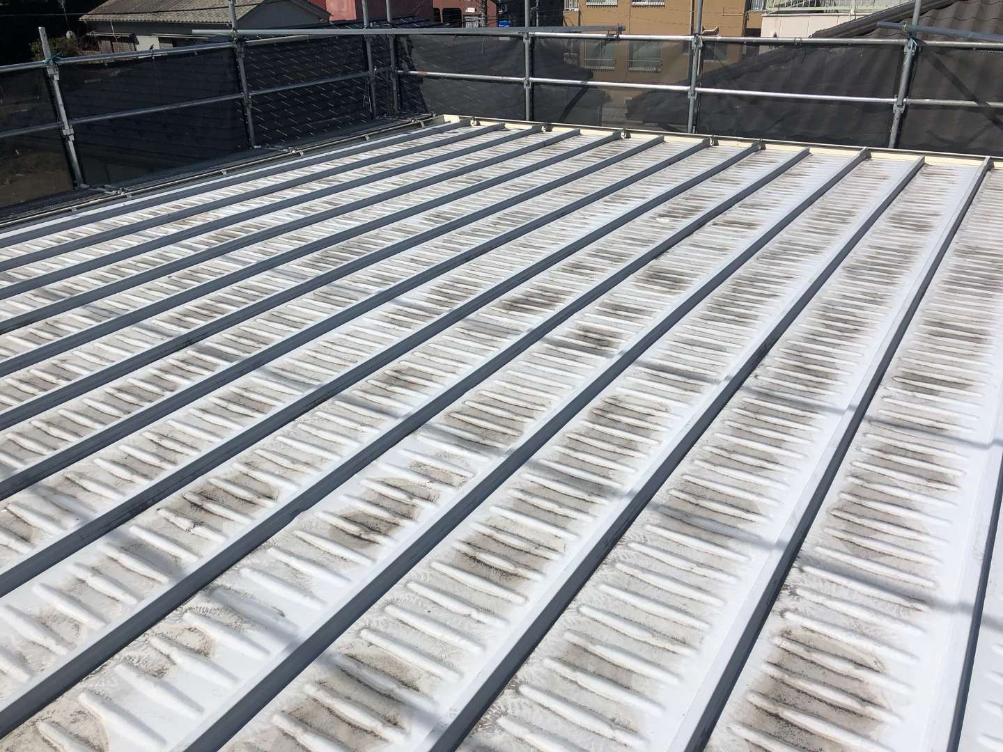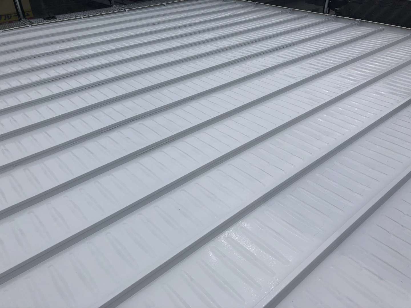 波板屋根の塗装ビフォーアフターです! 高圧洗浄後にケレン(古い塗膜、錆などの除去)を徹底的に行い、2液性の錆止め塗料を2回塗りました。既存…