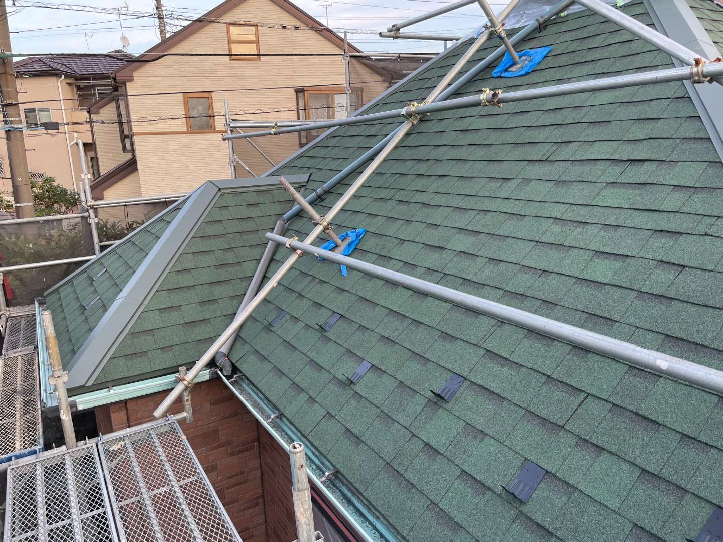 波板屋根の塗装ビフォーアフターです! 高圧洗浄後にケレン(古い塗膜、錆などの除去)を徹底的に行い、2液性の錆止め塗料を2回塗りました。既存…