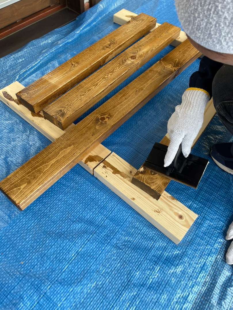外壁塗装も無事に完了し、庭先に置いてある施主様お手製の椅子もキシラデコールで着色しました!